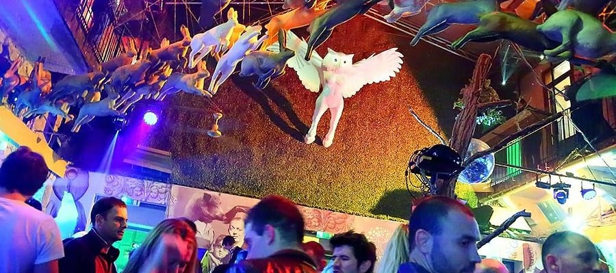 What makes Instant‑Fogas unique is its eclectic musical programming and its international audience. Every evening presents a different flavor: hip-hop, metal, techno, pop remixes, Latin rhythms, or indie live acts fill different rooms simultaneously. This musical diversity allows groups with varied tastes to split and reconvene, making it an ideal venue for friends and tourists alike. The crowd is as international as the playlist—locals, expats, and visitors mingle freely, drawn by the energy, the freedom, and the no‑cover or free-entry policy for most nights. As the night climaxes, the rooms pulse with lights synced to bass drops, while the garden terrace offers space to breathe, smoke, or chat away from the main dance pits.