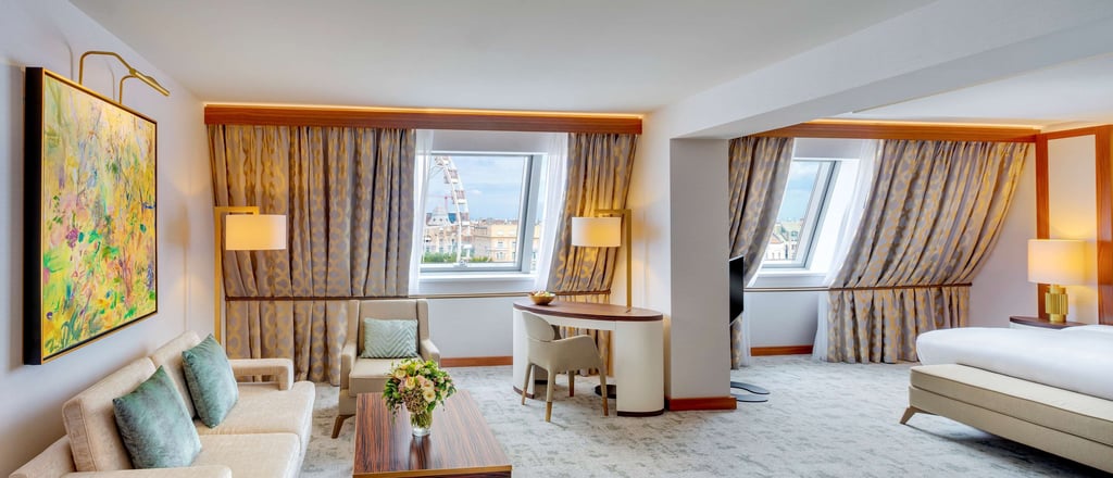 Stepping into a guest room, whether a Deluxe Room or Presidential Suite, is like entering a modernist canvas with tones of cream, charcoal, and teal layered above soft carpet. Spacious layouts offer large desks, smart climate control, blackout drapes, and marble bathrooms with deep soaking tubs and rainfall showers. Rooms feature local design touches such as embroidered Hungarian motifs, custom carpentry made by local artisans, and curated Hungarian literature on bedside tables. The suites explore expansive views of Erzsébet tér, Grand Boulevard or the Danube, stretching daylight from sunrise to sunset across dramatic vistas. Subtle art pieces such as abstract Hungarian tapestry or sculptures enhance the contemporary aesthetic without overwhelming. High-speed Wi-Fi, multimedia hubs, renewable water filtration systems, and minibar options featuring Hungarian wines and craft spirits align with a thoughtful modern stay. The integration of modern comfort, spatial generosity, local craft detail, technical design, and urban panorama creates a guest experience that feels thoroughly contemporary yet rooted in local identity.