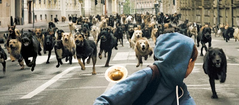 Mundruczó and cinematographer Marcell Rév submerge the viewer in Hagen’s world by shooting many sequences at ground level, using a hand-held 35mm camera to mimic a dog’s field of vision. Urgent motion and visceral proximity evoke empathy in untrained actors and rescue dogs alike. Scenes unfold with documentary realism—dogs chained in junkyards, dragged into cages, forced into violence—while intercut with tender long shots of Lili playing trumpet solos in a youth orchestra, evoking her longing and innocence. The editing by Dávid Jancsó intentionally jars our perception, weaving fluctuating pacing and abrupt transitions to unsettle viewers and force moral reflection. The world feels cruel but the storytelling remains poetic: Lili’s pale figure bike-riding through empty streets is mirrored by a tidal wave of dogs charging past behind her, a moment of magical realism that foreshadows broader conflict. The film positions Hagen not as a prop, but as a fully realized being—his confusion, suffering, and leadership rendered in choreographed, electrifying sequences. Visual realism and allegorical weight merge, making White God a visceral film that demands both feeling and thought.